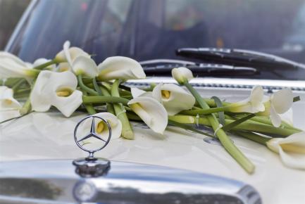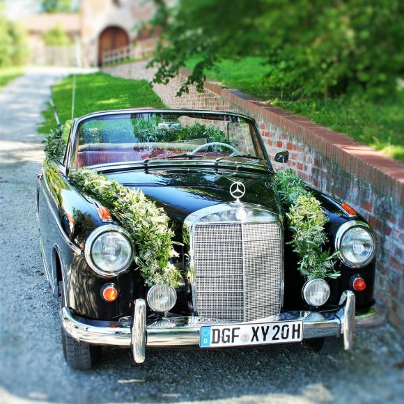 Eine romantische Kutsche, ein schicker Oldtimer, der Porsche oder eine glamouröse Limousine – auch Ihr Brautauto möchte standesgemäß geschmückt sein.