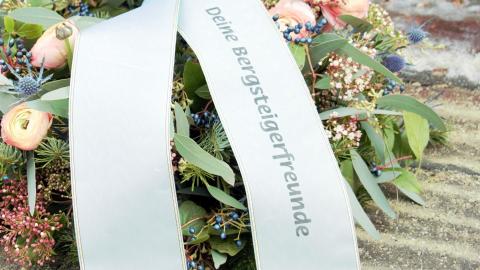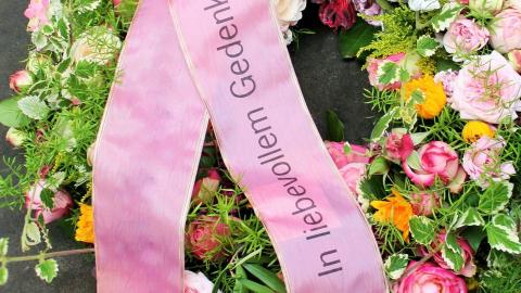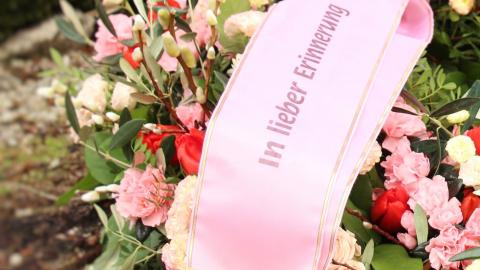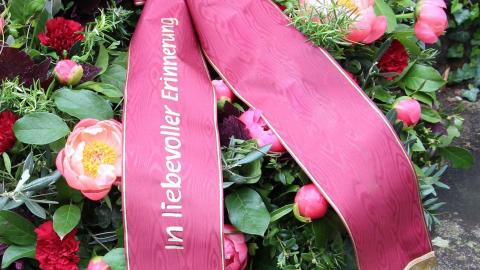 Die Auswahl des Schleifentextes ist wie die Auswahl der Blumen für die Trauerdekoration aktive Trauerarbeit. Das Band drückt Verbundenheit aus.
