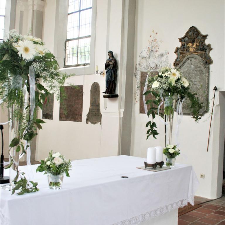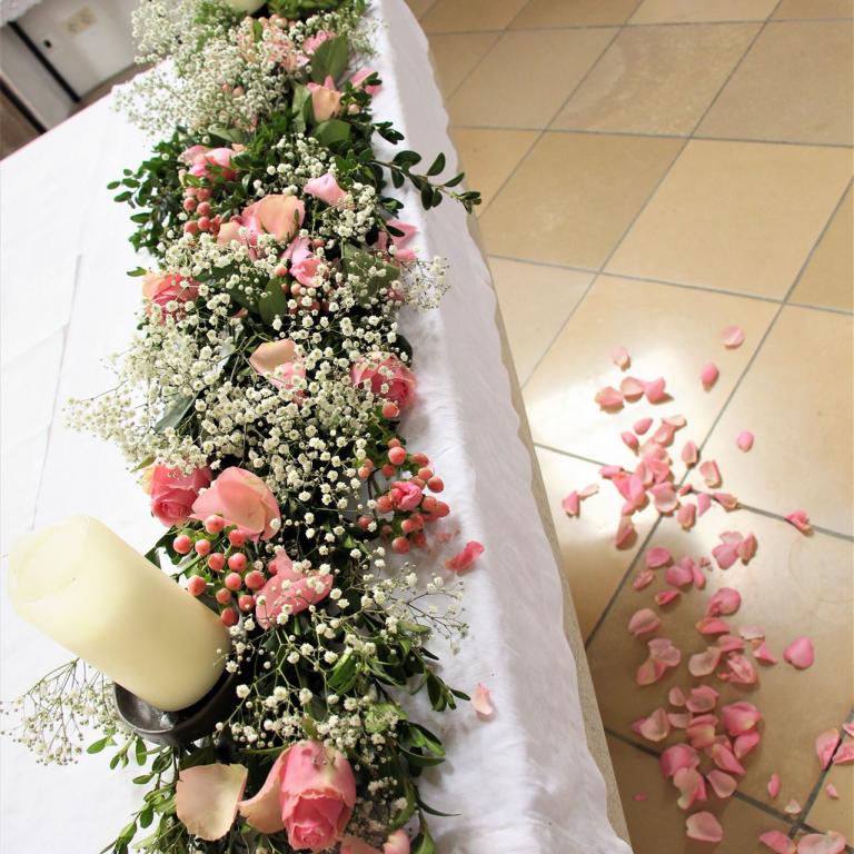 Floraler Schmuck läd ein und unterstreicht die Zeremonie.