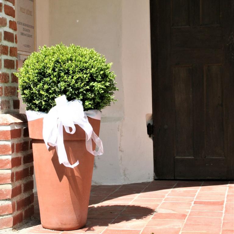 Ein florales Arrangement im oder vor dem Eingangsbereich weckt die Sinne Ihrer Gäste und verleiht ein einladendes Gefühl zur bevorstehenden Zeremonie.
